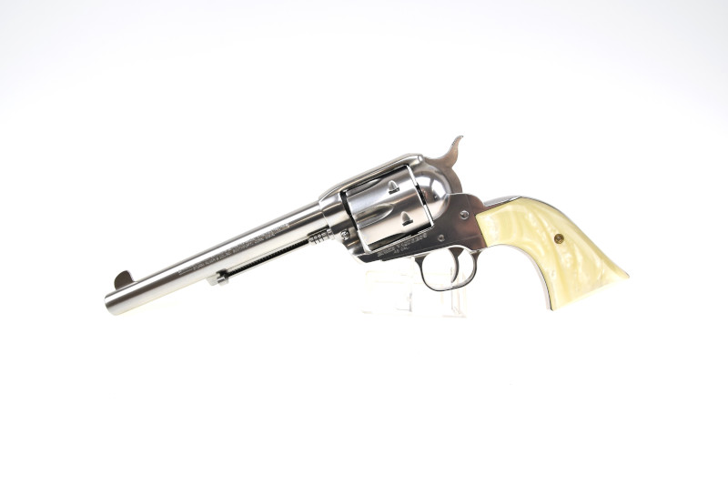 De Ruger Vaquero is een klassieke revolver met een authentieke western-uitstraling. Dit gebruikte exemplaar is uitgevoerd in het krachtige kaliber .45 Long Colt en volledig vervaardigd uit roestvast staal (RVS). Dit zorgt niet alleen voor een fraaie uitstraling, maar ook voor een lange levensduur en hoge betrouwbaarheid.